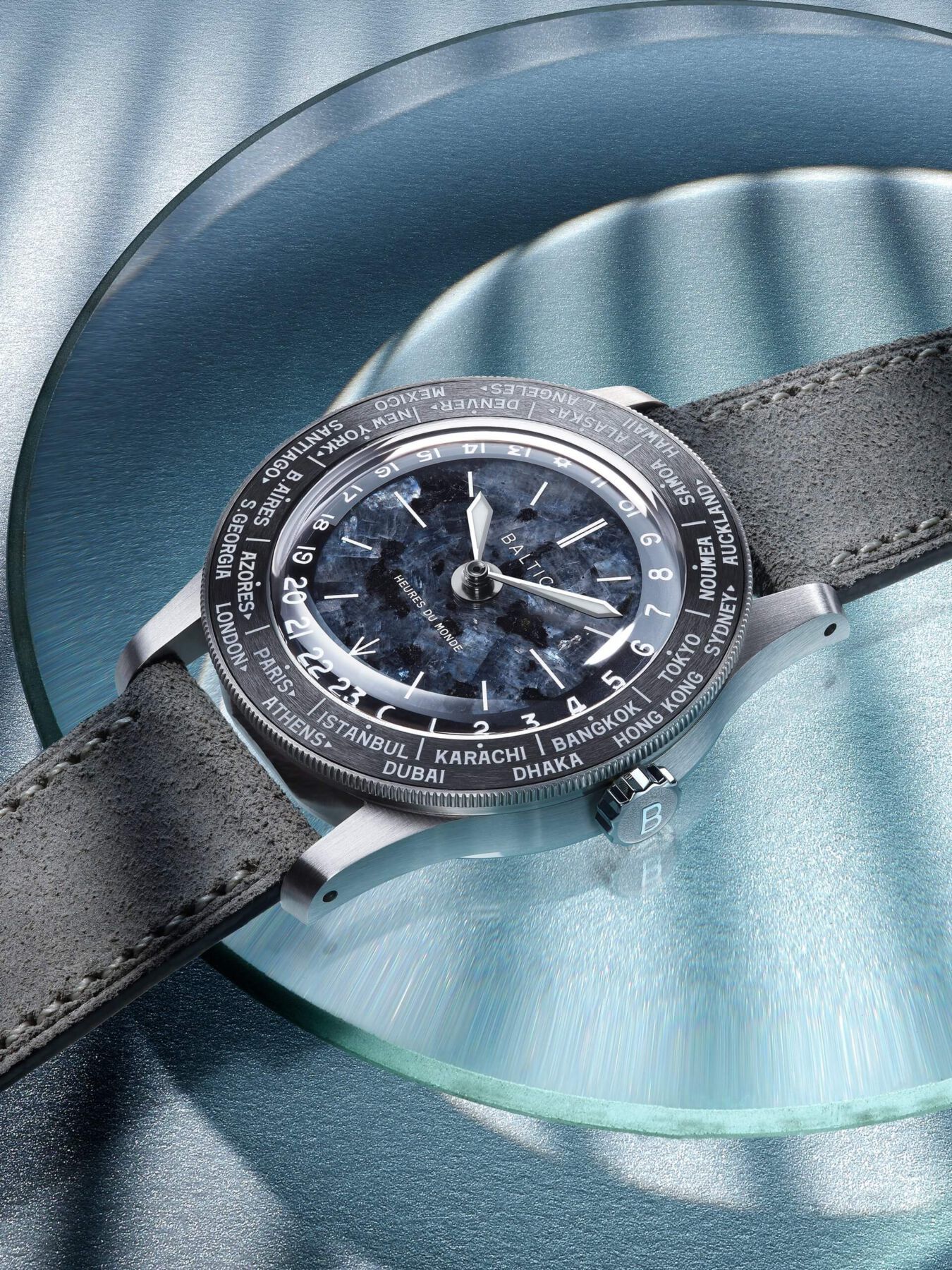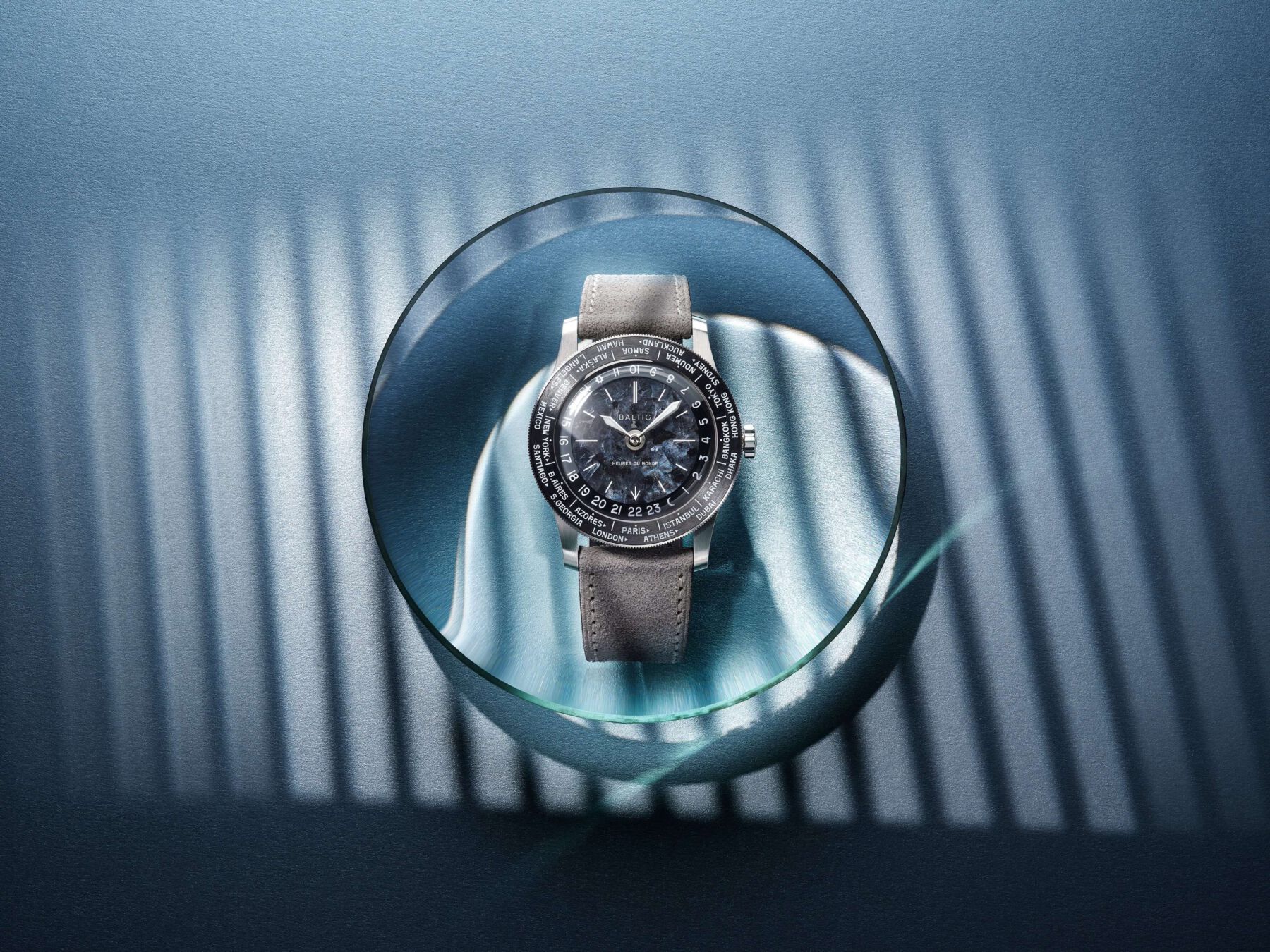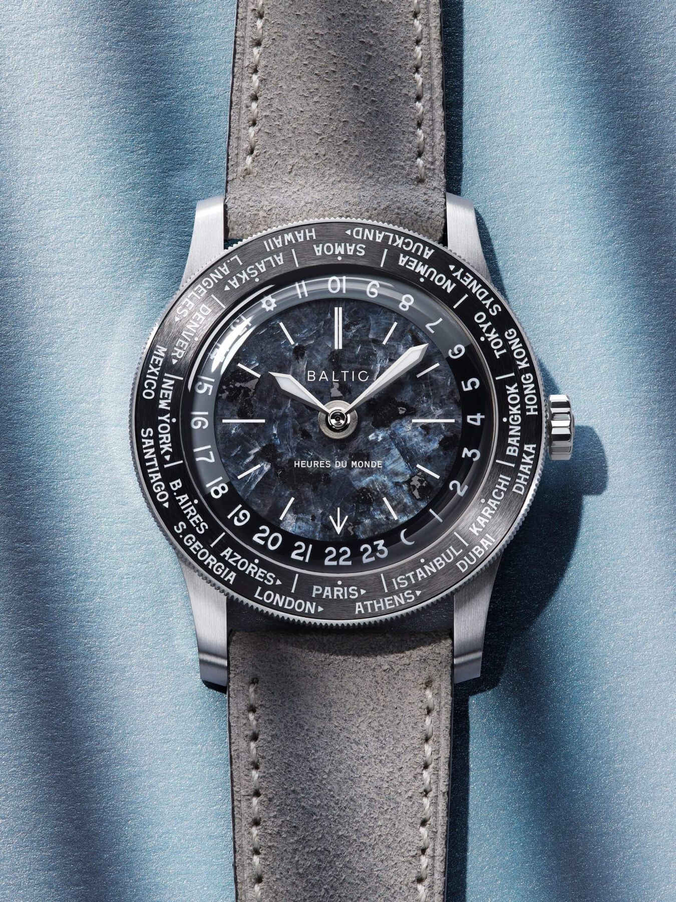 Baltic Heures du Monde: Un worldtimer con esfera de piedra milenaria y corazón suizo