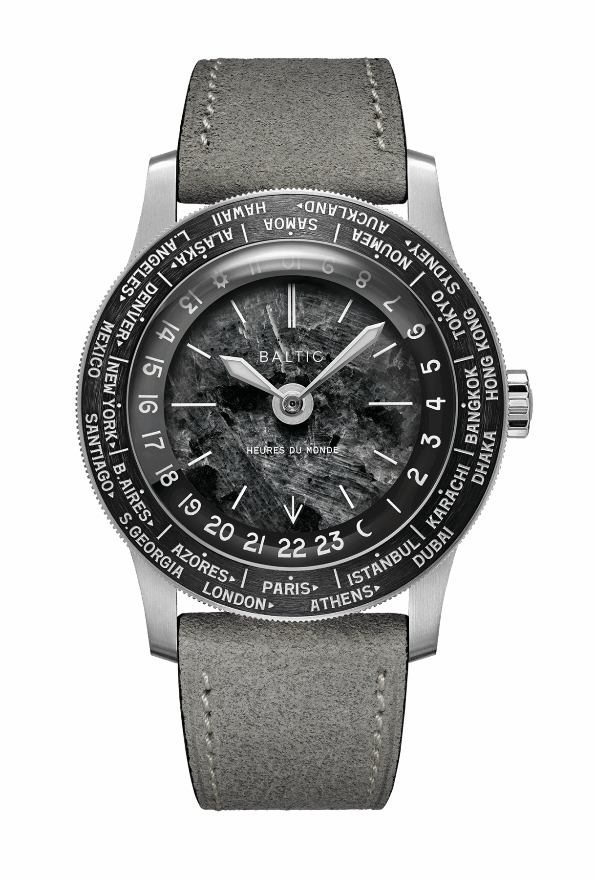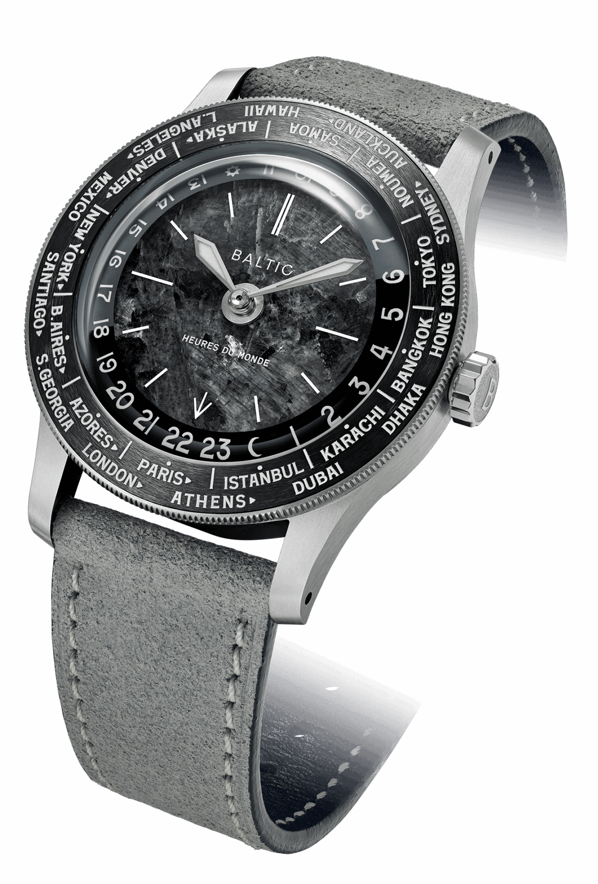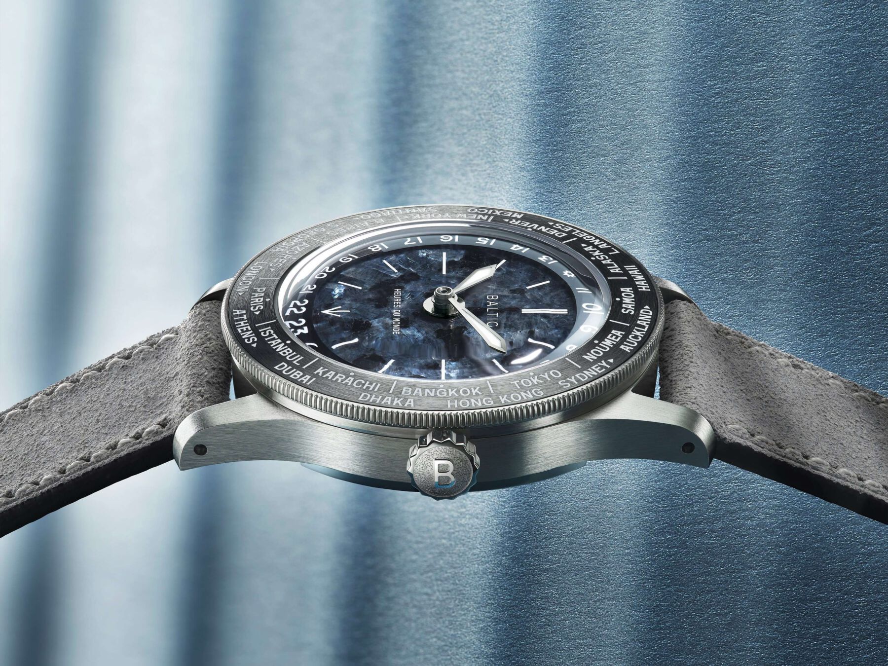 Baltic Heures du Monde: Un worldtimer con esfera de piedra milenaria y corazón suizo