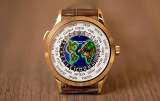 Desde patrones geométricos o vegetales hasta representaciones de animales, mapas o incluso coches de carreras, la diversidad es enorme. Entre todas estas opciones, mi referencia predilecta es la Patek Philippe 5231J. Un modelo relativamente reciente —lanzado en 2019— que combina la complicación de hora mundial con un mapa esmaltado de varios continentes en técnica cloisonné. Una pieza que equilibra de forma magistral funcionalidad, arte y esa elegancia contenida que solo Patek Philippe sabe imprimir.