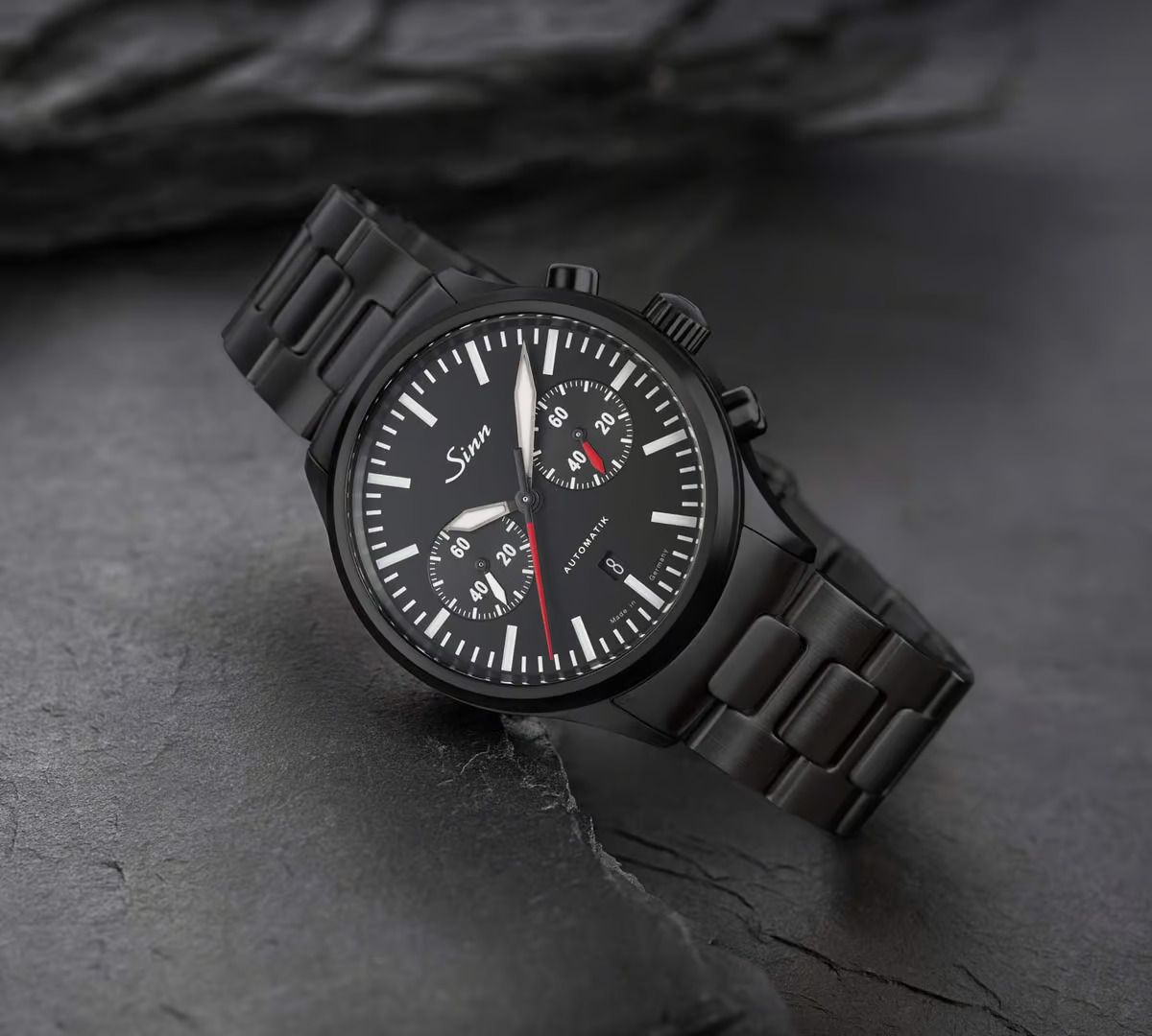 El siguiente en aparecer es un cronógrafo Sinn donde la marca despliega toda su tecnología.