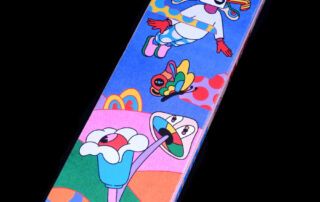 Murugiah es un artista y diseñador que crea ilustraciones súper llamativas, llenas de color y que te teletransportan a otros mundos. Sus raíces provienen de Sri Lanka, y eso se nota mucho en su estilo, porque mezcla elementos como máscaras tradicionales con formas modernas y psicodélicas. Todo lo que hace suele estar lleno de detalles, movimiento y personajes. Uno de esos personajes es Muru, que aparece continuamente en sus obras y ahora también en el Daydreamer. Es como una especie de carita o máscara muy colorida que ya se ha convertido en su sello personal. Aunque se formó en arquitectura, Murugiah lleva la última década trabajando como ilustrador y artista. Ha colaborado con clientes como Faber & Faber, Refugee Week, The Stanley Kubrick Estate, Apple y Elton John… ¡Menudo currículum! Hablando sobre la inspiración detrás de su diseño, Murugiah comentó: «Navegar por el mundo y aprender sobre uno mismo dentro de él es un sentimiento universal» «Esta exploración puede parecer intensa, por lo que con este diseño en particular quise representar la parte de mí que sueña despierta mientras investiga mi trabajo».