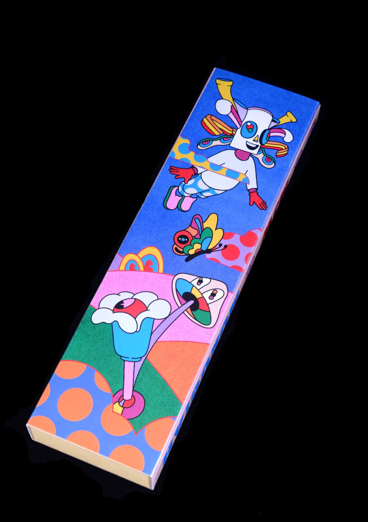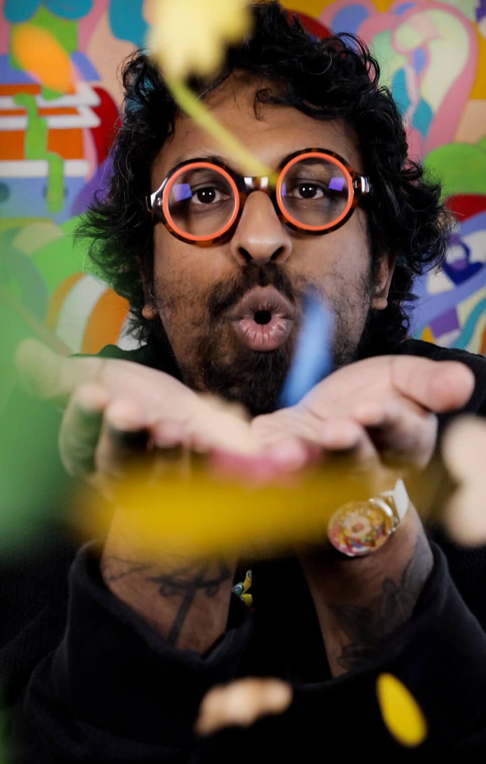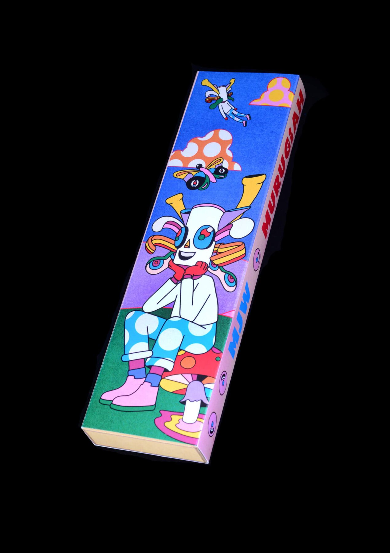 Murugiah es un artista y diseñador que crea ilustraciones súper llamativas, llenas de color y que te teletransportan a otros mundos. Sus raíces provienen de Sri Lanka, y eso se nota mucho en su estilo, porque mezcla elementos como máscaras tradicionales con formas modernas y psicodélicas. Todo lo que hace suele estar lleno de detalles, movimiento y personajes. Uno de esos personajes es Muru, que aparece continuamente en sus obras y ahora también en el Daydreamer. Es como una especie de carita o máscara muy colorida que ya se ha convertido en su sello personal. Aunque se formó en arquitectura, Murugiah lleva la última década trabajando como ilustrador y artista. Ha colaborado con clientes como Faber & Faber, Refugee Week, The Stanley Kubrick Estate, Apple y Elton John… ¡Menudo currículum! Hablando sobre la inspiración detrás de su diseño, Murugiah comentó: «Navegar por el mundo y aprender sobre uno mismo dentro de él es un sentimiento universal» «Esta exploración puede parecer intensa, por lo que con este diseño en particular quise representar la parte de mí que sueña despierta mientras investiga mi trabajo».
