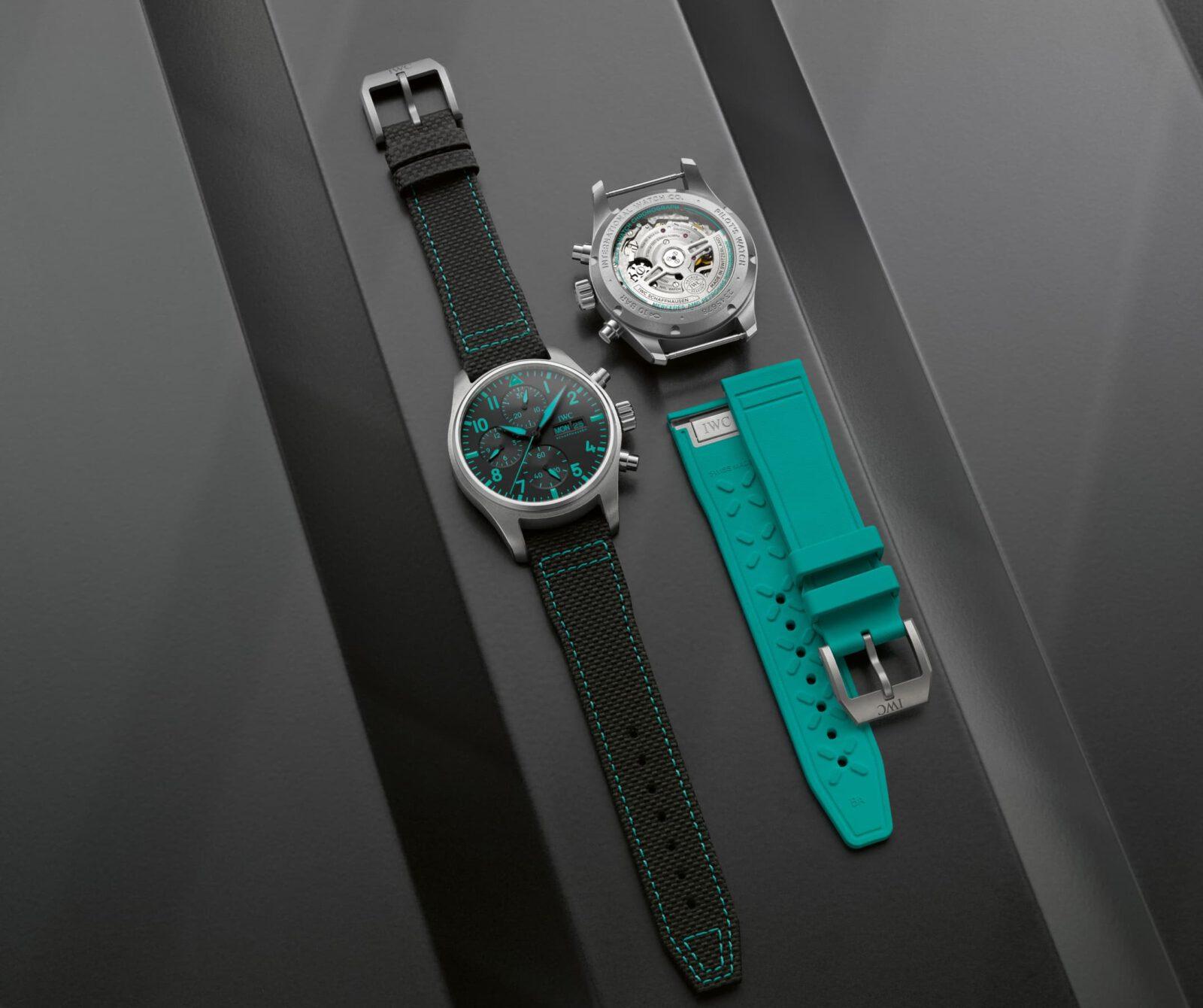 Mercedes mantiene desde hace años una sólida colaboración con IWC Schaffhausen, que ha producido relojes que reflejan la ingeniería, la precisión y las exigencias del equipo alemán. Aunque no con un carácter tan deportivo como otras marcas, ha sabido encontrar el equilibrio entre competición y la esencia de IWC, con detalles en el característico color del equipo Mercedes. La marca suiza también ha lanzado una colección en colaboración con el piloto británico George Russell.