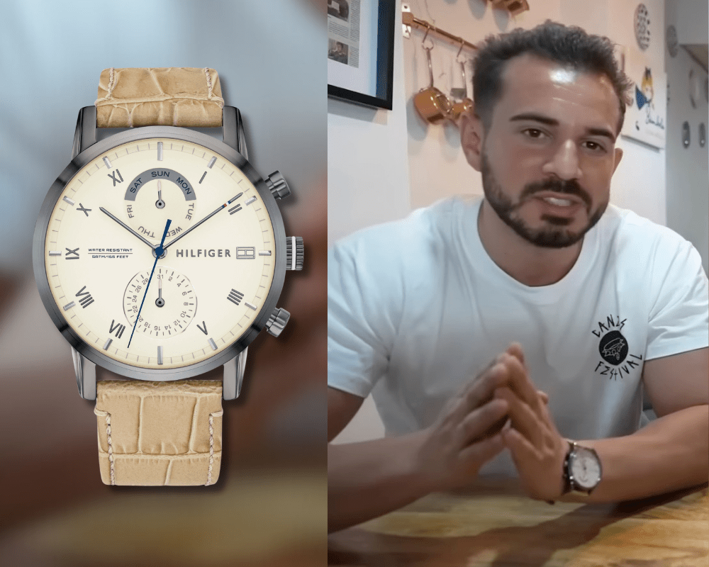 Y por otro, para ocasiones más elegantes, un Tommy Hilfiger de la línea “Dressed Up”, con un dial color crema, y complicación de fecha y día de la semana dispuestas en dos subesferas a las 12 y a las 6. Disponible por 169 EUR.