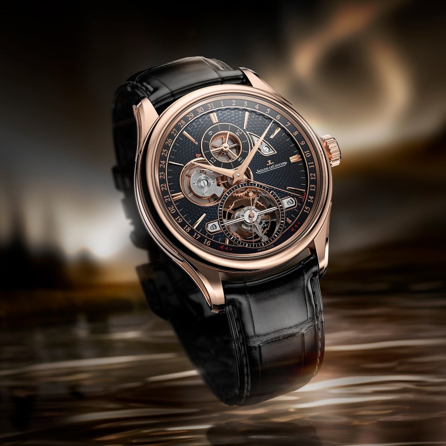 Para mí, la novedad estrella. Esta nueva referencia incorpora el calibre 868, un calendario perpetuo automático heredado del Master Ultra Thin Perpetual de 2013. Aunque con una reserva de marcha que pasa de las 38 a 70 horas. Con una caja de 39 milímetros de diámetro y tan solo 9,2 de grosor, aloja cuatro subdiales que recogen el mes y año a las 12, los días de la semana a las 3, la fase lunar a las 6 y la fecha a las 9. Una fase lunar especialmente llamativa por su fabricación en una hoja de platino martillada.