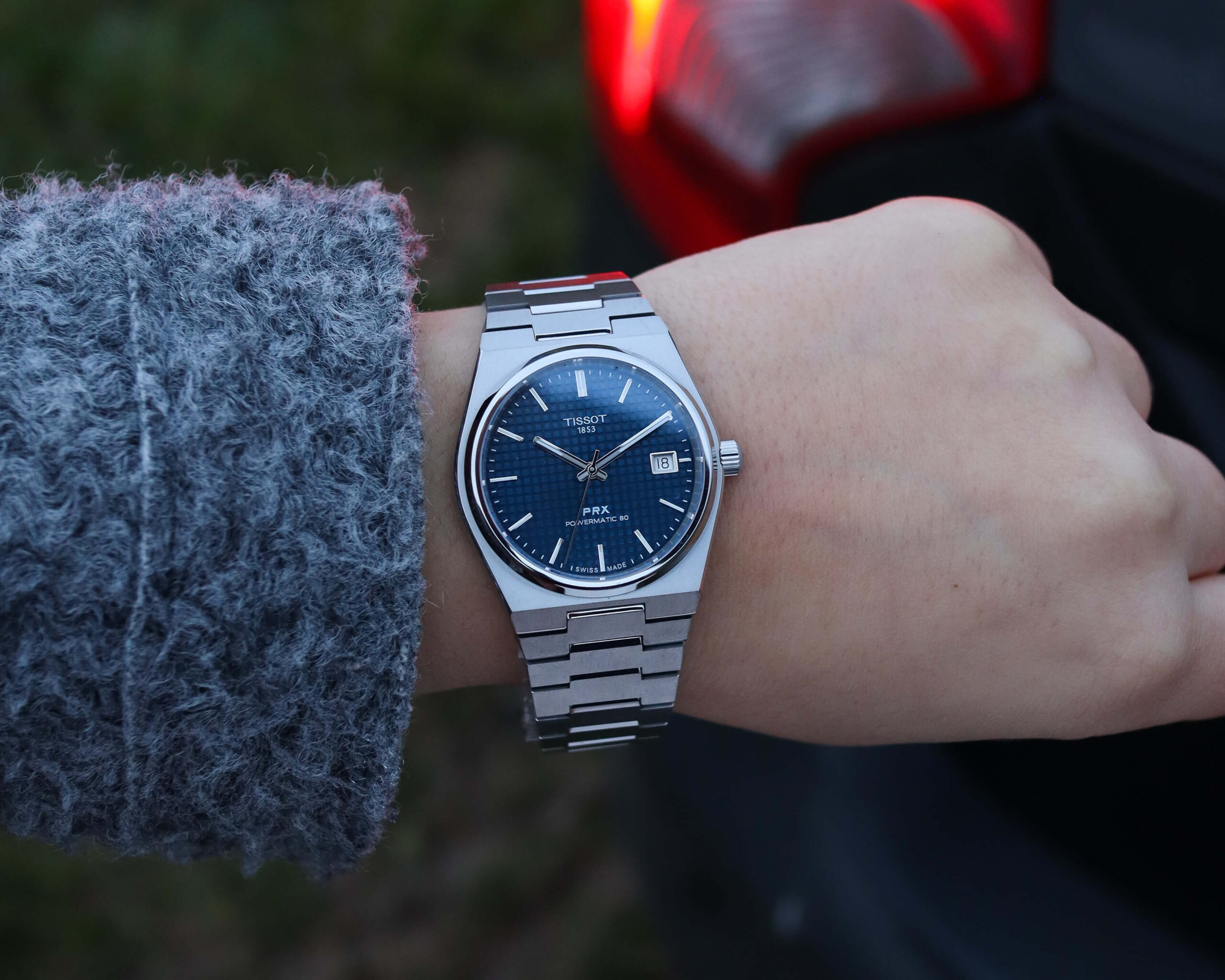 En mi muñeca de 17,5 cm, el reloj se siente muy proporcionado y cómodo, manteniendo el carácter deportivo-elegante que define al PRX y logrando que el brazalete acompañe perfectamente la curvatura de la muñeca desde el primer eslabón. Mientras que con la versión de 40 mm, la caja ocupaba prácticamente todo el ancho de la muñeca, haciendo que para algunos como yo, se sintiera demasiado grande e incluso desproporcionada.