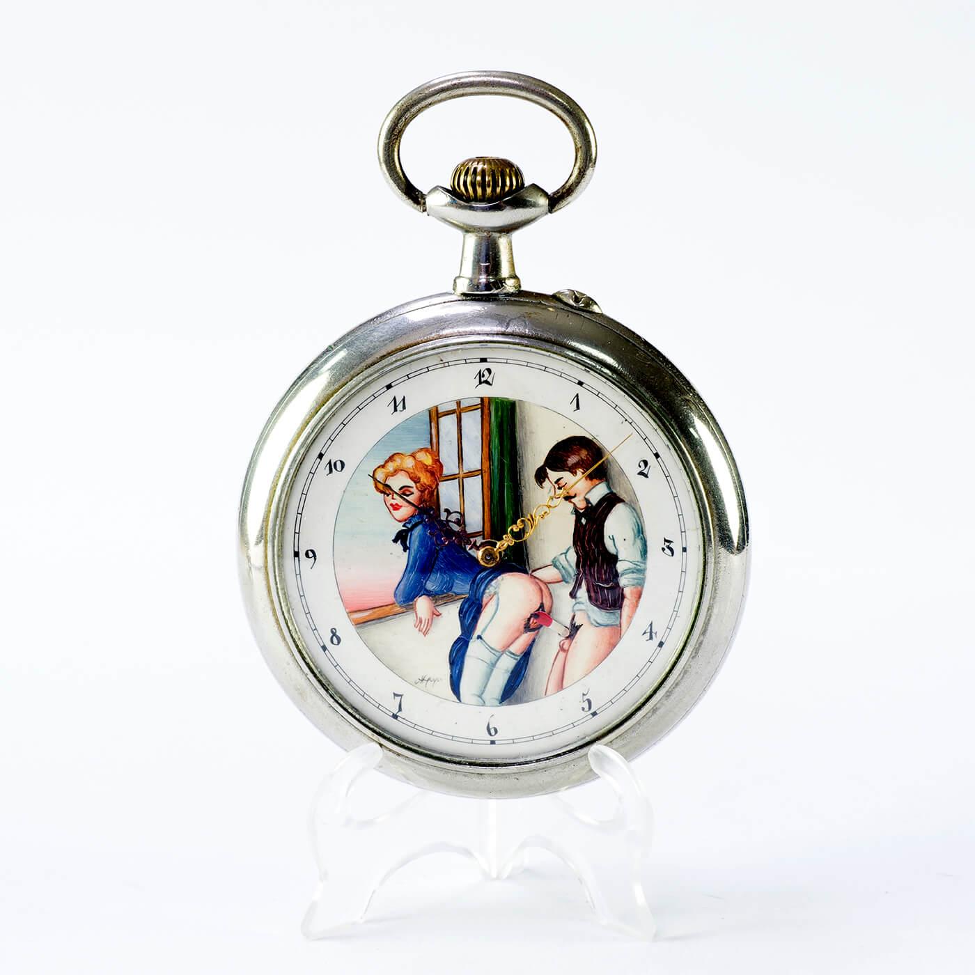 Siguiendo esta línea, otras firmas han recurrido igualmente a la pintura, aunque desde un enfoque más directo y menos refinado. La relación de Doxa con los diales eróticos es, cuanto menos, prolífica. Existen innumerables relojes de bolsillo que presentan un amplio abanico de escenas sexuales destinadas a satisfacer fantasías de todo tipo. No es extraño encontrar representaciones tan surrealistas como perturbadoras, con médicos y pacientes o profesores y alumnos como protagonistas. Un testimonio incómodo, pero revelador, de otras épocas y mentalidades.