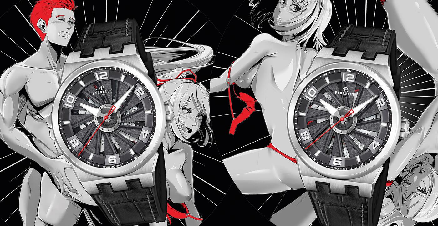 Bajo esta premisa, varias marcas han sabido plasmar su identidad dentro de esta tipología. Es el caso de Perrelet, firma reconocida por el uso de turbinas en sus esferas. Modelos como el Turbine Erotic (ref.A4062/S2) utilizan este elemento a modo de biombo, ocultando una escena de hentai —contenido sexual explícito procedente del anime, el manga o el videojuego japonés—.