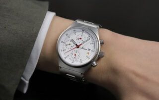 La esfera lacada es de un color blanco mate. Sigue incorporando una complicación de Small Seconds, algo más refinada. Ahora, gracias a un bisel interior, podemos leer los minutos de la cuenta atrás que se programen, y las agujas de la cuenta atrás, girarán en sentido anti-horario, para hacerlo más intuitivo.