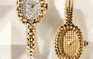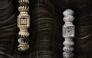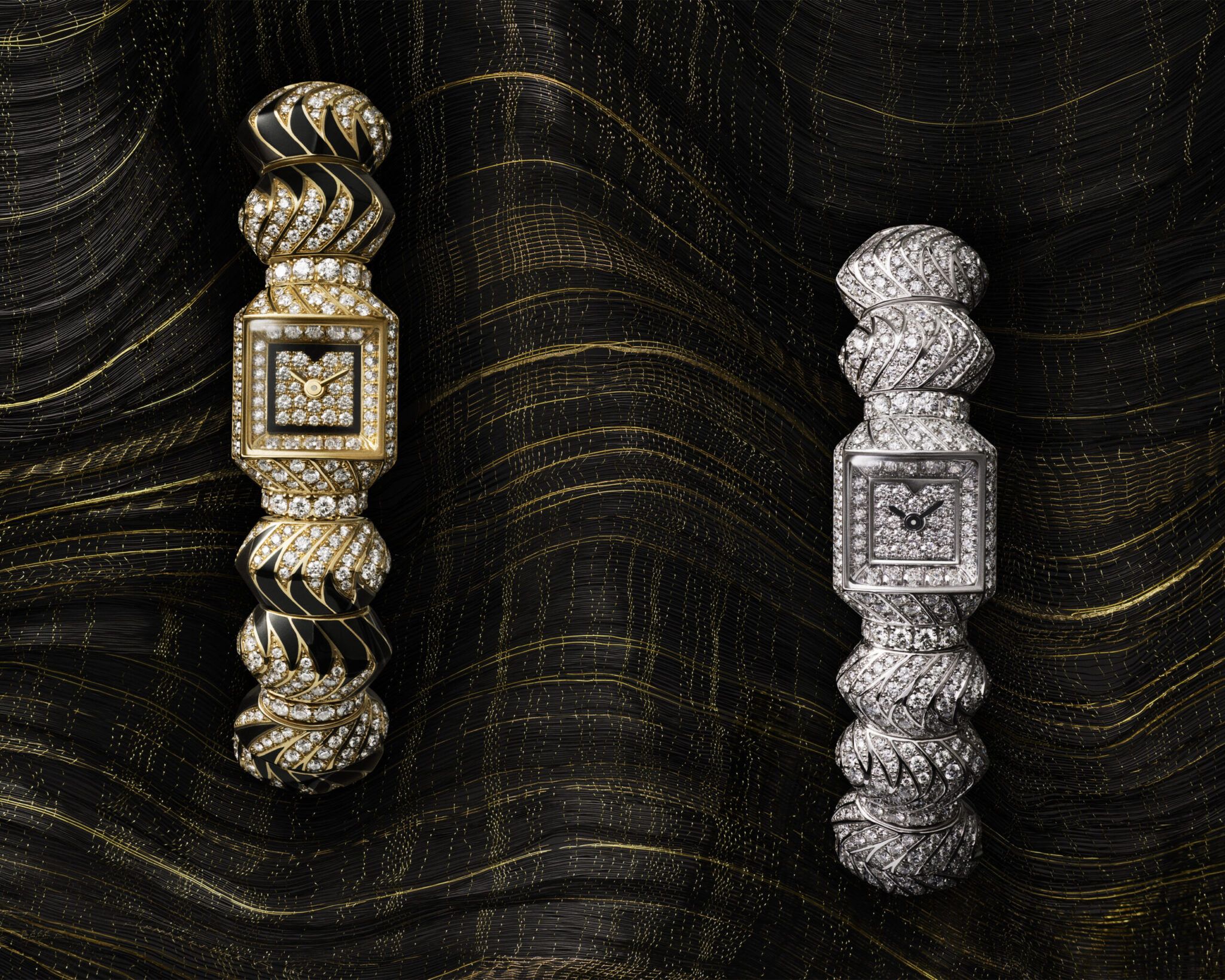 Una versión en oro gris y diamantes, y otra en oro amarillo, con diamantes y zonas lacadas a mano en negro que le dan un contraste espectacular
