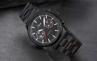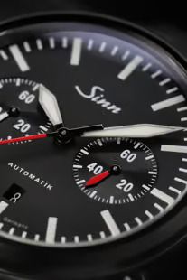 Un cronógrafo al más puro estilo Sinn. Bicompax, equipado con el calibre SZ05 con base Valjoux 7750, que has sido modificado para que la sub esfera de minutos llegue hasta 60 en una sola vuelta y no en dos. Incorpora la tecnología Tegiment de Sinn, para aumentar la resistencia a rayones. Limitado a 100 unidades.