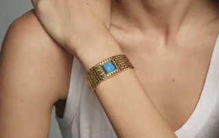 Dos nuevas versiones del reloj-brazalete por el que la marca ha apostado mucho desde su salida: una con un brazalete completamente dorado y una esfera de mineral turquesa, lo que hace que cada pieza sea única, y una segunda versión más sobria, de acero inoxidable, con una esfera verde menta con acabado rayos de sol.