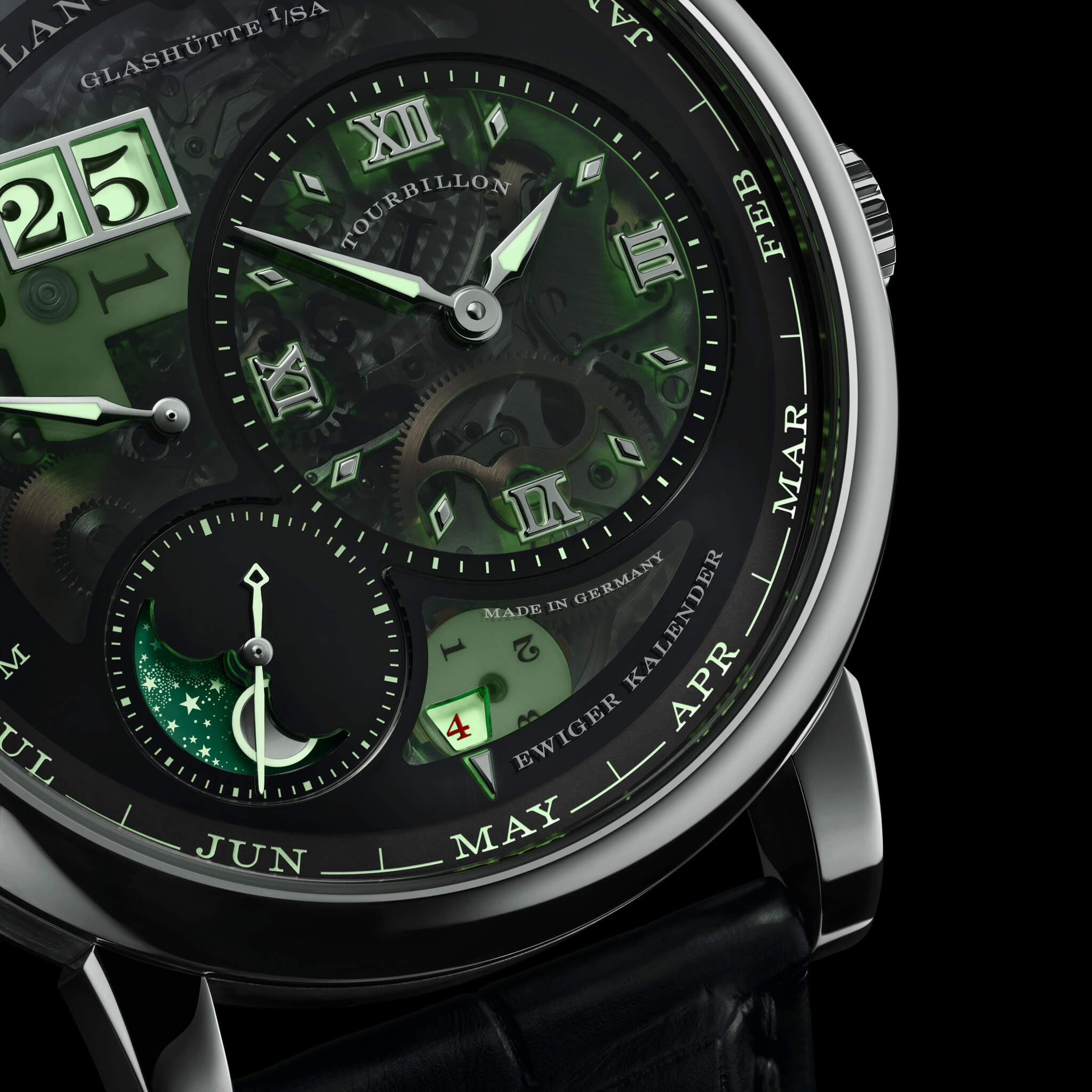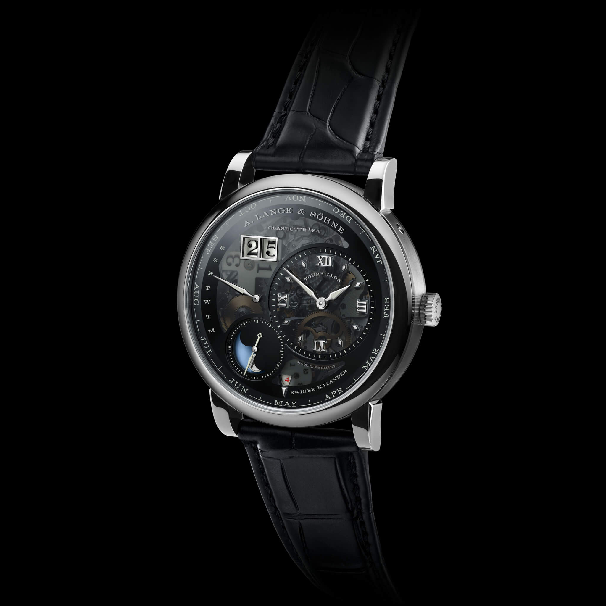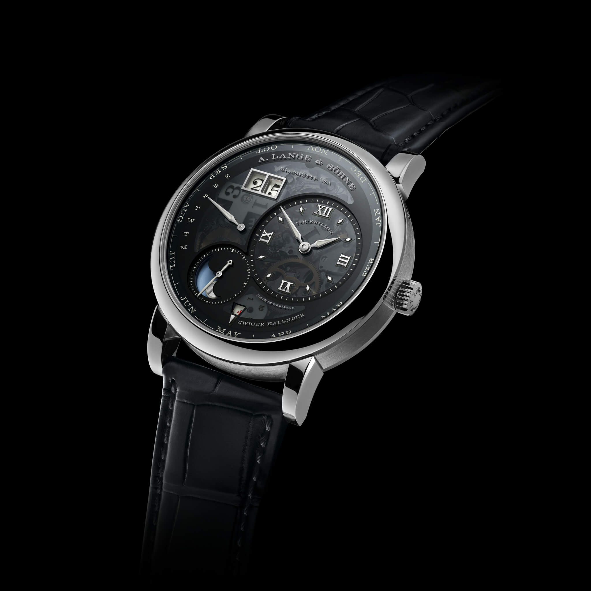 Una versión del Lange 1 Tourbillon Calendario Perpetuo en el que la luz (o más bien la oscuridad) roba todo el protagonismo.