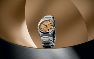 Vuelve para celebrar el centenario de la marca, y lo hace con un lenguaje de diseño al que no se nos tiene acostumbrados. Caja facetada, de 39mm con líneas muy afiladas. Una esfera de color «papiro», con un cepillado vertical e índices tipo California además de la complicación Small Seconds a las 6.