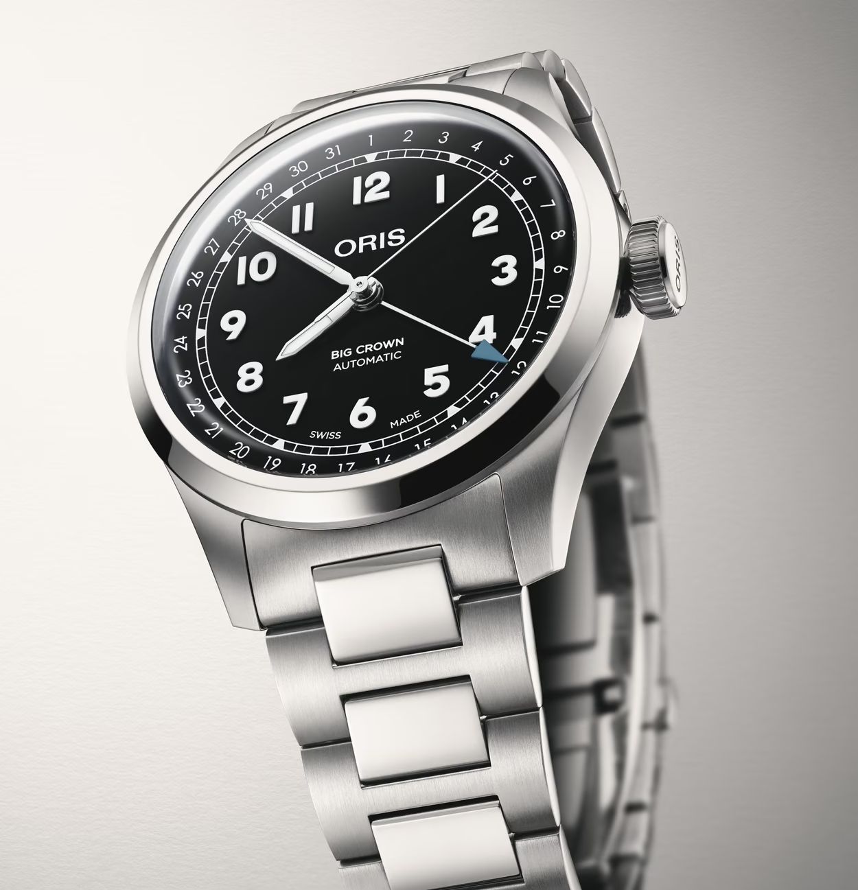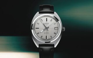Un reloj que desafió a la industria suiza, literalmente. Nos lo traen 60 años después en una edición en 35mm, caja de barril y asas integradas. Esfera plateada, índices tipo bastón y cristal acrílico para los nostálgicos. Un calibre automático Oris 733 lo completa.