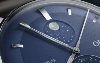 Un rediseño completo de uno de los relojes más complicados de Oris. En este caso, se eliminan dos de los cuatro subdiales, con un calibre nuevo: Oris 782. Manteniendo el indicador de fase lunar a las 12 y la segunda zona horaria a las 6.